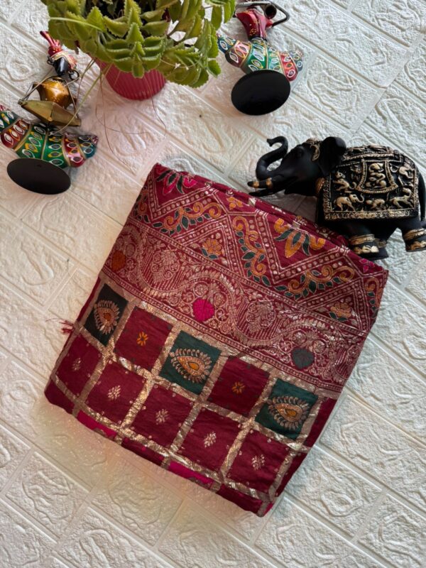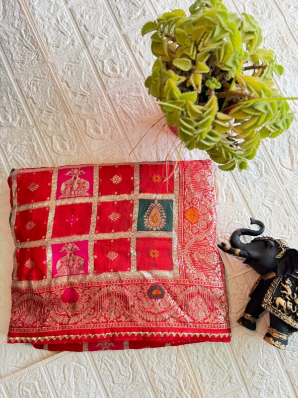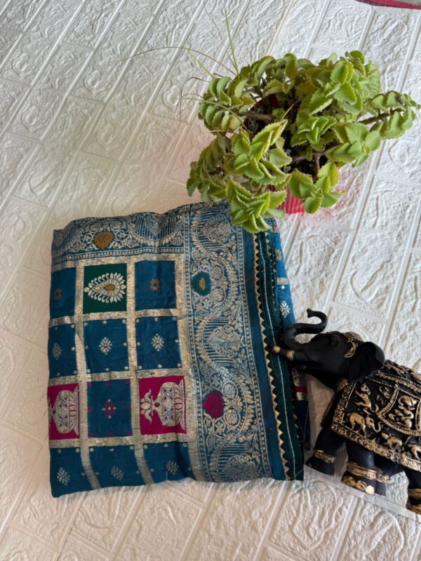 Be the first to review “Banarasi Silk Postella Rozi Saree”